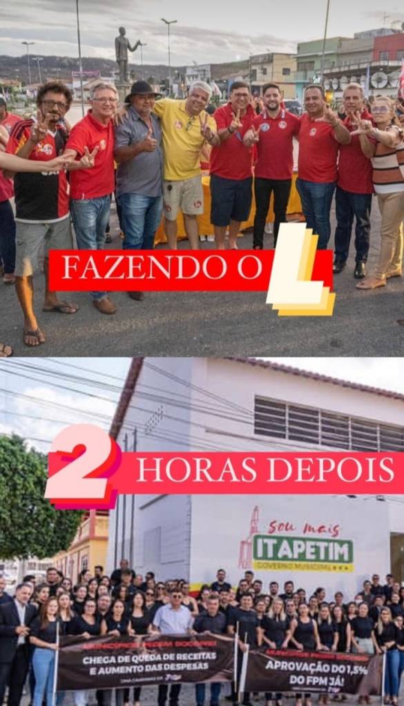 Em um ato de unidade e protesto, prefeitos de diversas cidades brasileiras, incluindo Itapetim, aderiram à paralisação das prefeituras realizada na última quarta-feira (30). A razão para essa mobilização foi a crescente redução dos repasses do Fundo de Participação dos Municípios (FPM) por parte do governo federal, que tem causado um impacto severo nas finanças municipais. O movimento, que também gerou uma série de memes irônicos com o famoso gesto “Faz o ‘L’,” destacou a mudança de posição de prefeitos que apoiaram Lula e agora se unem às manifestações.