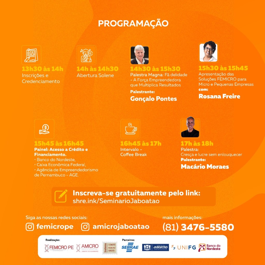 Nesta terça-feira (13), a cidade de Jaboatão dos Guararapes será palco de um evento imperdível para empreendedores e entusiastas dos negócios locais. A FEMICRO/PE, em parceria com a AMICRO Jaboatão dos Guararapes e o Sebrae/PE, promove, o “Seminário de Micro e Pequenas Empresas de Jaboatão dos Guararapes: Caminhos para o Crescimento dos Pequenos Negócios.” O encontro acontece no auditório da UNIFG, localizado na Rua Comendador José Didier, nº 27, em Piedade e oferece uma programação diversificada e dinâmica.
