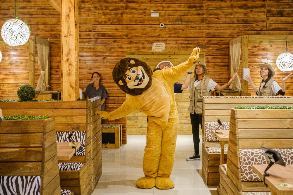 A decoração do espaço é uma atração à parte! Os móveis são feitos de maneira artesanal, revestidos com estampas de animais e estruturas de madeira, há folhagem em toda decoração, esculturas e pelúcias de animais expostas em pontos estratégicos, telões com trilhas sonoras inspiradas em músicas africanas e banheiros com som ambiente de selva. Com tanta atenção aos detalhes, o espaço transforma o passeio em um momento lúdico para adultos e crianças.