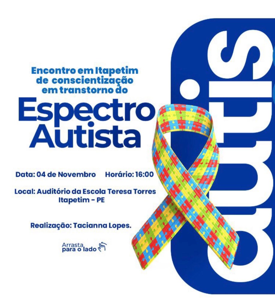 Neste sábado (04), o auditório da Escola Teresa Torres, em Itapetim-PE, se transformará em um espaço de conscientização e inclusão, com o Encontro de Conscientização em Transtorno do Espectro Autista (TEA), organizado pelo blog Taciana Lopes. Este evento tem como objetivo não apenas sensibilizar a sociedade sobre o autismo, mas também combater o preconceito que muitas vezes envolve essa condição que afeta cerca de 2 milhões de brasileiros, de acordo com dados do IBGE.