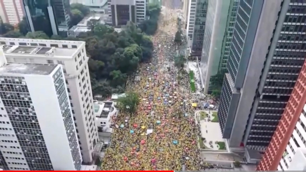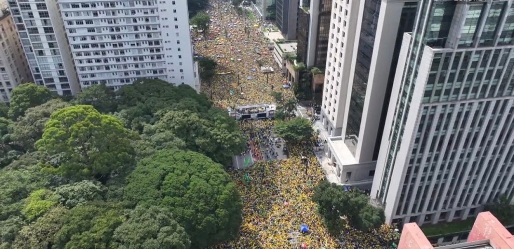 Neste domingo(25), apoiadores de Jair Bolsonaro lotaram a Avenida Paulista, em São Paulo, em um ato convocado pelo ex-presidente. A movimentação começou cedo, com a avenida já registrando intensa presença de apoiadores usando camisas verde e amarelo, além de bandeiras do Brasil, de Israel e de Bolsonaro.