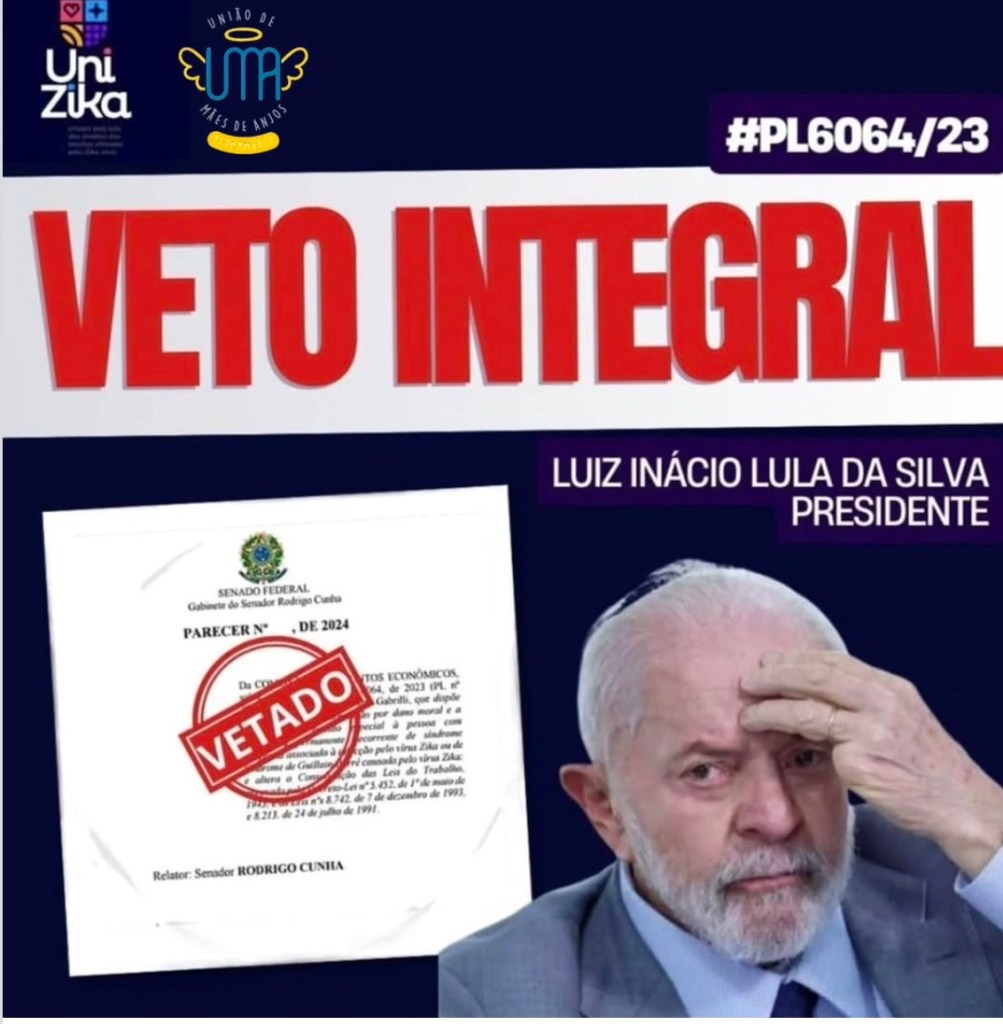Nesta última quinta-feira (9), o presidente Luiz Inácio Lula da Silva vetou integralmente o Projeto de Lei 6064/2023, que previa a concessão de pensão vitalícia a pessoas com deficiência permanente decorrente da infecção pelo zika vírus durante a gestação. O veto foi publicado no Diário Oficial da União com a justificativa de “contrariedade ao interesse público e por inconstitucionalidade”.