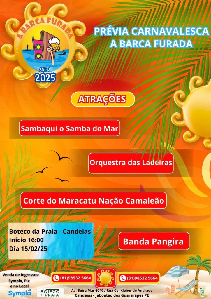 Neste sábado (15), o bairro de Candeias, em Jaboatão dos Guararapes, será palco de uma das mais animadas prévias carnavalescas. O Bloco A Barca Furada levará alegria e diversão para foliões de todas as idades no Boteco da Praia Candeias. Com o tema “Um Carnaval para Toda a Família”, o evento promete ser uma celebração inesquecível, unindo tradição e criatividade.