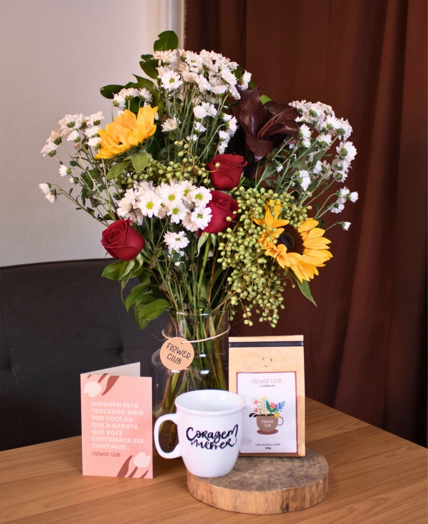 Outra collab da Flower Club para o Dia das Mães reúne duas marcas lideradas por mulheres: Café POR ELAS, especializada em torrefação de cafés especiais, e Ócio & Café, marca paulistana de canecas feitas à mão. A parceria resultou em um kit pensado para celebrar os pequenos rituais da rotina, como o café da manhã, com um olhar para o bem-estar e a reconexão. O conjunto inclui um buquê classic da Flower Club, um vaso de vidro, uma caneca da Ócio & Café estampada com a mensagem “coragem mulher” e um café especial desenvolvido pelo Café POR ELAS em parceria com a Flower Club. A proposta é transformar gestos cotidianos em momentos de leveza e significado.