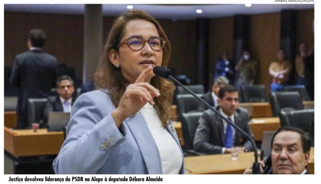 O Tribunal de Justiça de Pernambuco (TJPE) decidiu, nesta terça-feira (1º), devolver à deputada Débora Almeida (PSDB) a liderança do partido na Assembleia Legislativa de Pernambuco (Alepe). A decisão, proferida pelo desembargador Agenor Ferreira de Lima Filho, cassou a liminar que havia restituído o posto ao deputado Diogo Moraes (PSDB), que também ocupava a presidência da CPI da Publicidade.