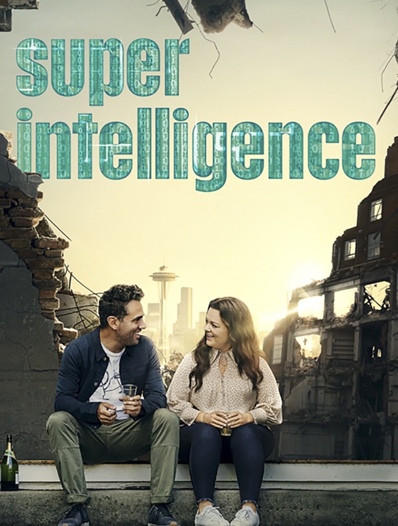 Em Superinteligência (2020), comédia de ficção dirigida por Ben Falcone, a atriz Melissa McCarthy vive Carol Peters, uma mulher “completamente comum” que se torna objeto de estudo da mais poderosa inteligência artificial já criada. A I.A., com a voz do ator James Corden, avalia se a humanidade deve ser poupada, subjugada ou simplesmente destruída — e Carol tem a missão de provar que os seres humanos valem a pena.