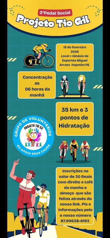 Itapetim, no Sertão do Pajeú pernambucano, será palco de mais uma grande iniciativa que une esporte, lazer e solidariedade no início de fevereiro. No dia 8 de fevereiro, acontecerá o 3º Pedal Social do Projeto Tio Gil, um evento ciclístico que tem atraído ciclistas e amantes da atividade física de toda a região.