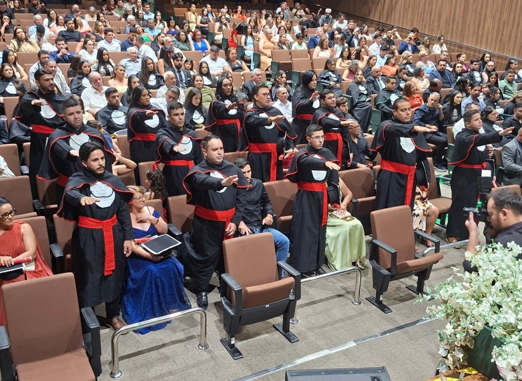 Colação – Além do curso de Direito, alunos dos cursos de Farmácia e Fisioterapia também participaram da colação de grau neste dia 22. Na quarta, dia 21, foram graduados os alunos do curso de Enfermagem e Técnico de Enfermagem, estes da FIC Técnico.