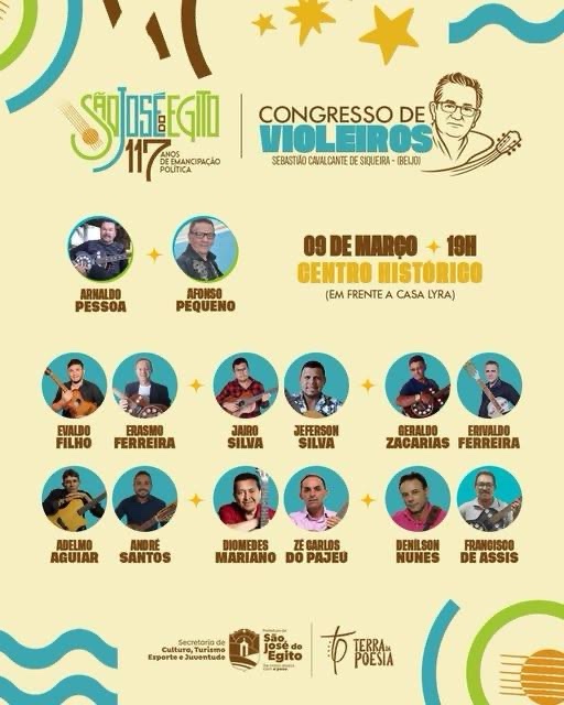 Com mais de um século de história, São José do Egito reafirma, por meio do Congresso de Violeiros, seu protagonismo na cena cultural nordestina e mantém viva uma das mais importantes expressões da poesia popular brasileira.