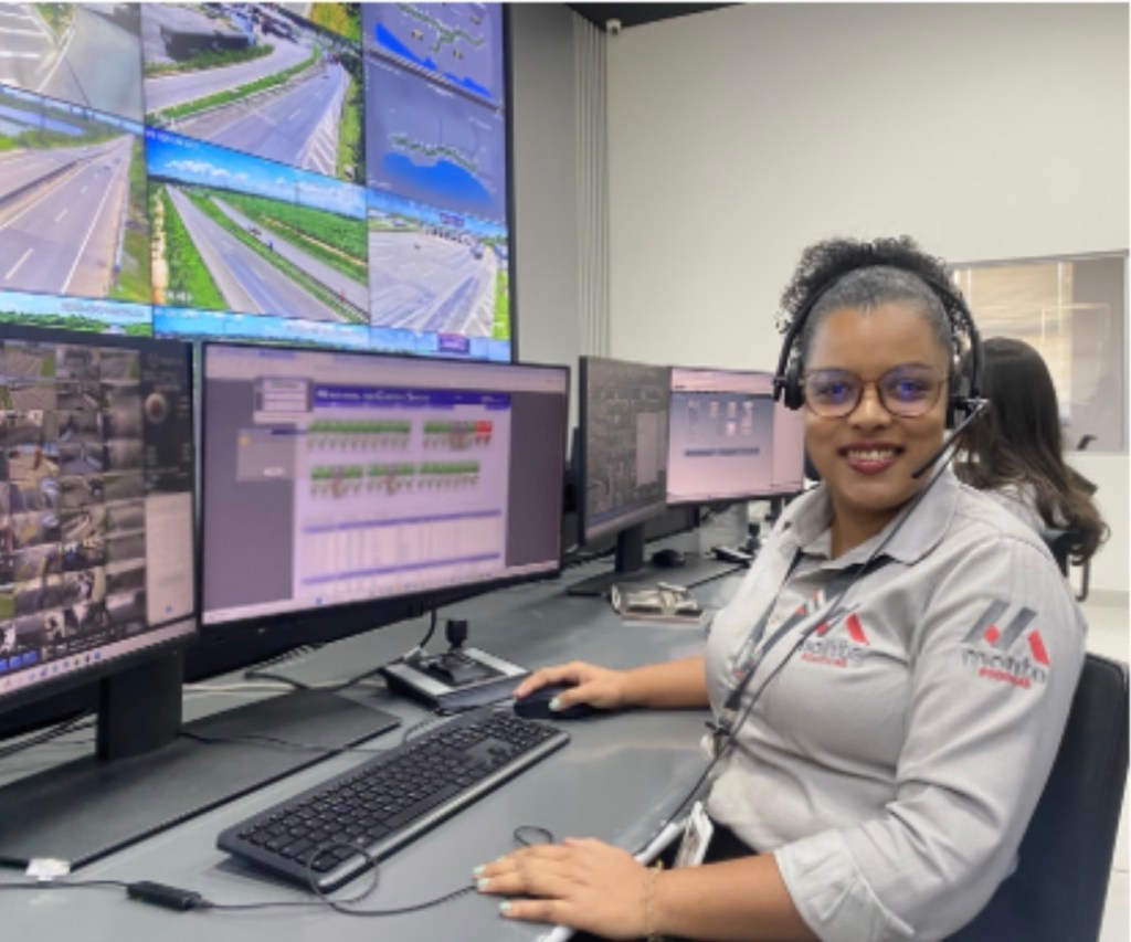 Já Enally Paz iniciou sua trajetória na operação de praça há 13 anos e, atualmente, atua como controladora de pedágio das duas concessões. Dos bastidores, ela acompanha em tempo real a operação das cabines, monitora sistemas, organiza fluxos e contribui para que o tráfego siga com eficiência e segurança. “Comecei como operadora de praça e depois passei para a função no controle de pedágio. A natureza da atividade exige respostas rápidas, principalmente em situações de emergência”, destaca.